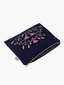 Косметичка выполнена из мягкого бархата, приятного на ощупь, и украшена вышивкой лотосов — символом возрождения и процветания в культуре Древнего Египта.