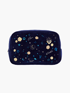 Элегантная косметичка выполнена из мягкого бархата с подкладкой из итальянской вискозы и украшена изысканной вышивкой «Символы», где каждый элемент заключает в себе глубокий смысл: сила духа, внутренний свет, нежность любви и лёгкость игры.