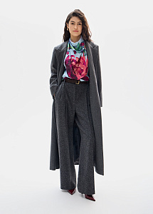 Наш знаковый принт «Георгины» воплощен в шелковом платке в умиротворяющем голубом оттенке. Этот цвет подчеркивают сложность принта, создавая игру света и тени на поверхности ткани.