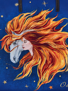 Сумка-шопер с авторской вышивкой огненной лошади - символа 2026 года и одного из самых энергичных знаков восточного календаря. Благодаря объёмной вышивке изображение приобретает глубину и динамику, подчеркивая благородство этого могущественного тотема.