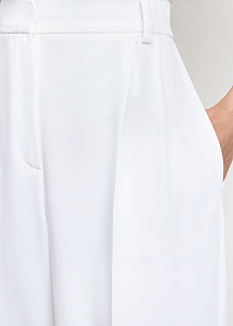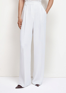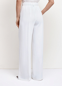 Брюки прямого кроя в молочном оттенке. Модель с широким поясом на резинке, карманами и застёжкой-гульфиком.