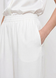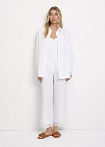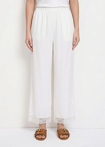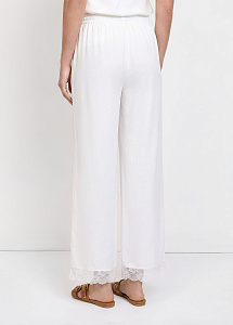 Брюки из натурального хлопка в белом цвете с кружевом. Модель свободного силуэта, с карманами и поясом на резинке. Брюки станут идеальным выбором для летних дней в городе или отпуска.