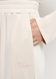 Прямые трикотажные брюки с удобным поясом на резинке и боковыми карманами. Рекомендуем сочетать с футболкой из аналогичной ткани.