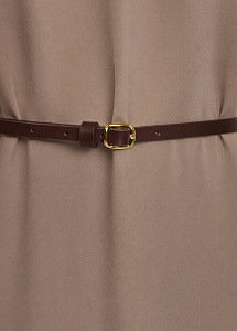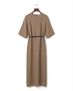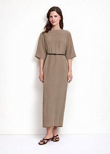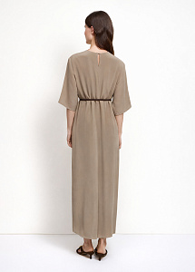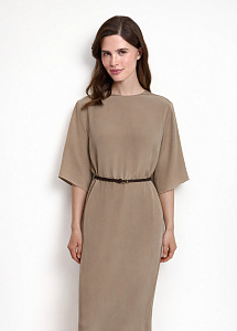 Платье свободного силуэта из 100% натурального шёлка с короткими рукавами. В комплекте тонкий пояс, мягко подчёркивающий талию.