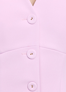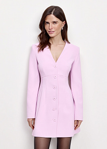 Мини-платье приталенного силуэта с выразительным V-образным вырезом. Модель выполнена из крепа в нежном розовом оттенке. Вещи из такого материала не мнутся, не выцветают, приятны на ощупь и будут вас радовать на протяжении многих сезонов.