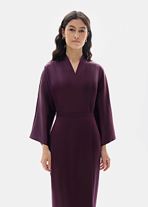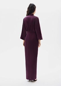 Вечернее платье из струящегося шелка в глубоком сливовом оттенке с отрезным силуэтом, подчеркивающим талию. Платье станет отличным выбором для вечерних выходов и мероприятий.