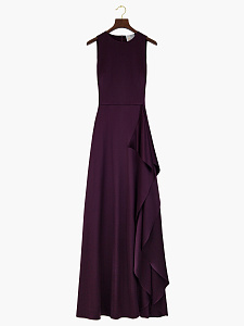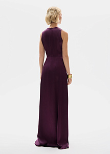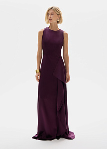 Вечернее платье из шелка в благородном сливовом оттенке с асимметричной драпировкой и разрезом. Отрезной силуэт, подчеркнутый ремнём, длина макси и лаконичный крой подчеркивает утонченность образа.