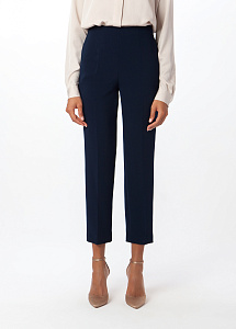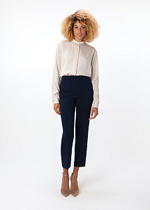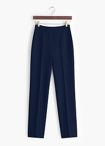 Брюки женские, прямого силуэта, со стрелками на переднем половинке, с цельнокроеным поясом, с застежкой на потайную молнию в шве сидения задних полотнищ.