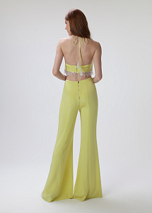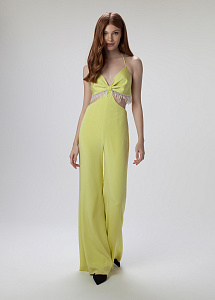 Комбинезон с длинными брюками и отдельным лифом на бретелях, с отделочной тесьмой по лифу,с застежкой на металлические молнии в среднем шве спинки.