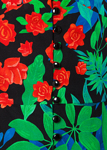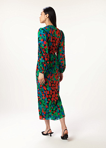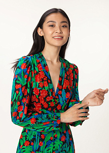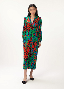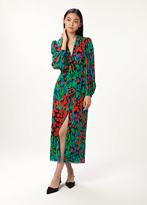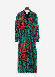 Шёлковое платье средней длины с длинными свободными рукавами и принтом «розы» из новой коллекции.