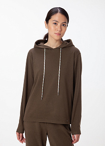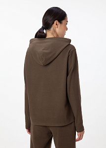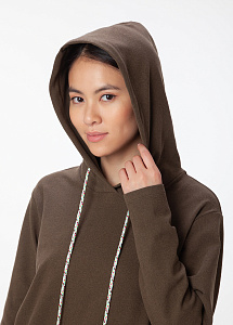 Трикотажная толстовка свободного кроя с капюшоном. Изделие из флиса - самого комфортного материала для прохладных дней в стиле кэжуал. Сильный, стойкий бархатистый базовый оттенок, внушающий доверие.Он достаточно нейтрален, по этому с ним получаются прекрасные сочетания с любыми яркими оттенками.