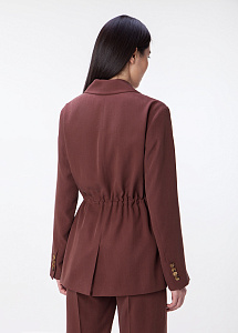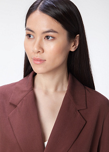 Жакет свободного кроя, на шелковой подкладке с английским воротником и кулиской на талии. Изделие выполнено из тенселя. Данная ткань гипоаллергенна и обладает усиленной прочностью, что обеспечивает комфорт и изностойкость. Оттенок, который очаровывает своей манящей теплотой. Придает авторитетность и статность образу и смотрится пикантно. Это нейтральный цвет, его можно использовать в деловом и повседневном образе.