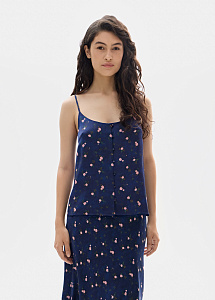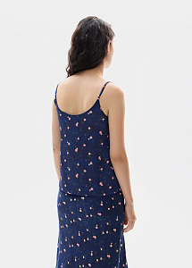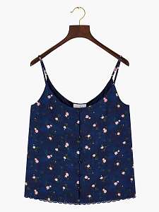 Шелковый топ на тонких бретелях прямого силуэта. Модель украшена кружевом по краю, что придает образу утонченность. Идеально сочетается с юбкой в этом же оттенке.