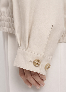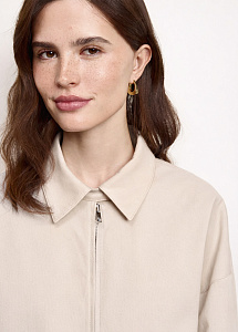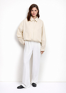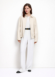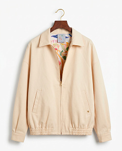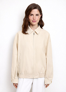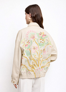 Бомбер из плотного хлопка с вышивкой на спине. Модель с карманами, застёжкой на молнию, отложным воротником и подкладкой из нежной вискозы.