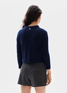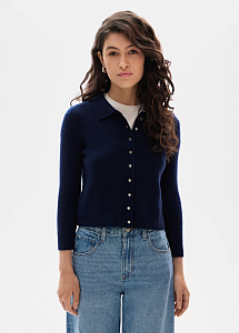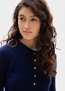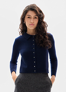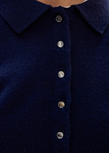 Кардиган из премиального кашемира в благородном сапфировом оттенке. Модель прямого силуэта выполнена из тонкой нежной пряжи с отложным воротником и пуговицами-кристаллами. Рекомендуем сочетать с брюками и юбками из нашей коллекции.