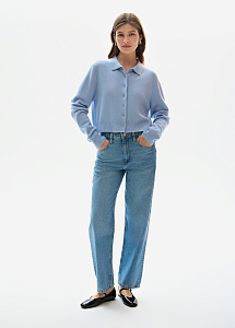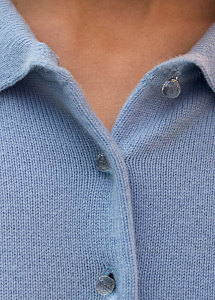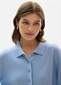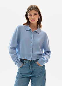 Кардиган из премиального кашемира в небесно-голубом оттенке. Модель прямого силуэта выполнена из тонкой нежной пряжи с отложным воротником и пуговицами-кристаллами. Рекомендуем сочетать с брюками и юбками из нашей коллекции.