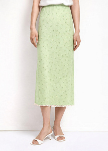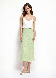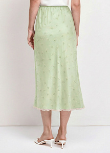 Юбка в длине миди из натурального шёлка с нежным цветочным принтом. Модель скроена по косой, что подчеркивает достоинства фигуры, по талии кулиска с эластичной тесьмой.