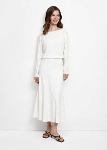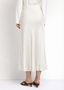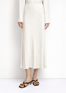 Молочная юбка в длине миди из 100% натурального шёлка. Модель скроена по косой, что подчеркивает достоинства фигуры, эластичный пояс обеспечивает комфортную посадку. Рекомендуем сочетать с топами и блузами из нашей коллекции.