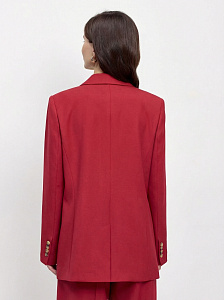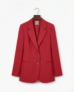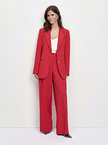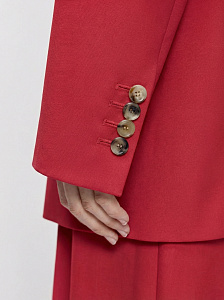 Однобортный жакет прямого силуэта из шерсти в красном цвете с шёлковой подкладкой. Модель с английским воротником, рукавами со шлицей и карманами. Рекомндуем сочетать с брюками из аналогичной ткани.