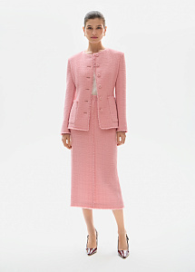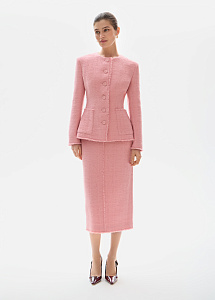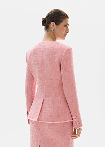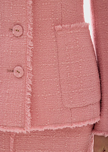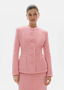 Жакет из итальянского твида в нежно-розовом оттенке. Универсальная модель приталенного силуэта с подкладкой из струящегося шелка. Идеально сочетается с юбками мини и миди в тон из нашей коллекции.