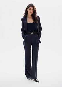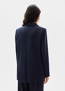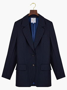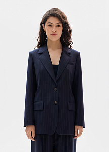 Жакет из шерсти в глубоком сапфировом оттенке в тонкую полоску. Полуприлегающий силуэт с английским воротником подчеркивает сдержанную элегантность. Модель комфортна в носке и идеально сочетается с брюками и шортами в тон из нашей коллекции.