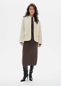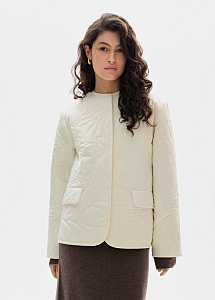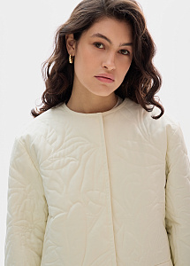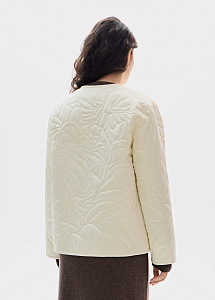 Стеганый жакет в молочном оттенке с художественной строчкой «Георгин». Прямой силуэт с утепленной подкладкой создает элегантный образ. Модель идеально сочетается с трикотажем, брюками и юбками из нашей коллекции.