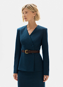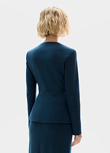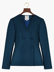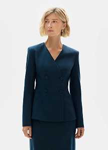Шерстяной жакет двубортного кроя в изумрудном оттенке с баской и шелковой подкладкой. Для создания безупречного образа рекомендуем дополнить юбкой в тон из нашей коллекции.