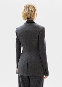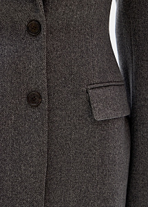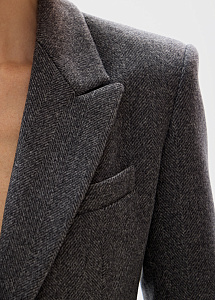 Жакет удлинённого кроя из шерсти и кашемира в сером оттенке. Мягкий приталенный силуэт с отложным воротником создает образ сдержанной элегантности. Универсальная модель идеально сочетается с брюками и юбками из нашей коллекции.